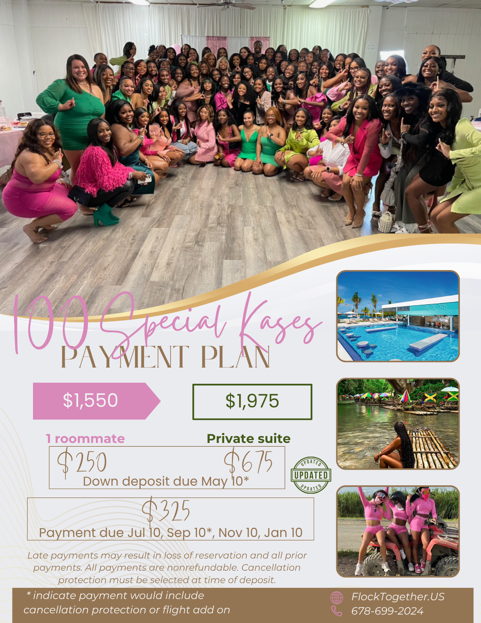 Fill Google form first, or purchase will be void. Purchase must be made under the name of traveler. Room type can only be changed if you purchase cancellation protection . All payments are non refundable unless you purchase cancellation protection. An odd number of travelers in the group require an odd number of private suites reserved for the group.